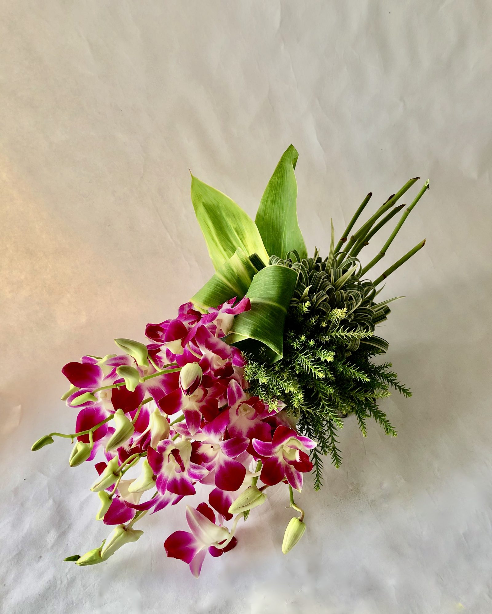 この写真の3つのアレンジメント、「スプレイシェイプ」という基本形を応用したものなんですが、全く違うものに見えませんか?